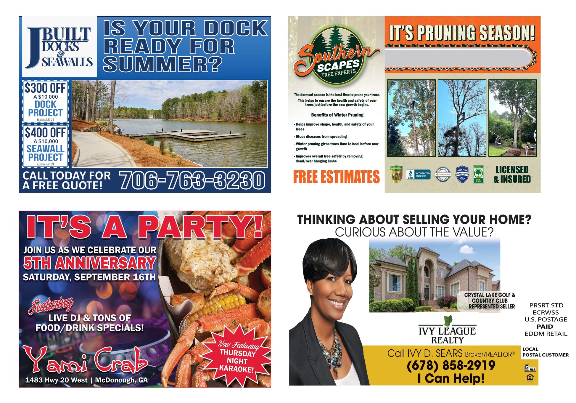 Advertise your business with this shared 6x9 postcard. By sharing this postcard we're able to offer a much lower price. We will not include competitors on the same postcard, for example if you do landscaping you'll be the only landscaper there. We will design your ad and include coupons if you would like.
